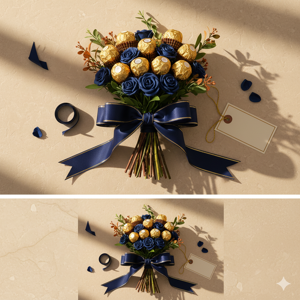 Celebrate Dad with thoughtful Father’s Day gifts handcrafted in the UK. Our chocolate bouquet gifts pair favourite chocolates with refined ribbons and elegant florals, finished with your free gift message. Choose deep navy and gold, classic neutrals or warm earth tones, with sizes to suit every budget—from simple gestures to statement centrepieces.